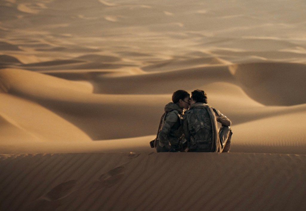 ”Franchise filmmaking has become a drearily televisual affair; medium shots of actors standing in front of greenscreens in Georgia warehouses. Filmed on gigantic sets in locations around the world, these Dune pictures feel like gosh darn movies, referencing shots from Lawrence Of Arabia and Apocalypse Now not just as homages, but as aspirational markers.” – WBUR’s Arts & Culture, 02/29/2024